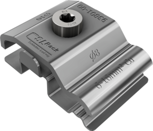 The SL Rack Lightning Protection Clamp A2 top is the ideal solution for a standard-compliant connection of photovoltaic systems to external lightning protection and equipotential bonding systems. It safely connects lightning protection wires with diameters of 6, 8, or 10 mm. Made of high-quality stainless steel, the compact clamp (52 x 48 x 19 mm) offers maximum stability at minimal size. Weighing just 0.042 kg, it is easy to handle and can be installed quickly. Potential equalization is possible up to a minimum of 6 mm². The clamp is mounted from the top, making access particularly easy.